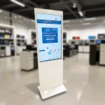 Pantalla Touch para contenidos interactivos, conexión WIFI y por cable LAN para visualizar páginas WEB o aplicaciones Windows. Colores corporativos y logo de tu empresa. Puede cargar Videos y Fotos, Ideal para presentación de Códigos QR, PDF con catálogos, menús, mapas web, Fotos, Páginas Web, Conexión WiFi, Emisión de Sonido 2 parlantes de 10W Sistema Operativo Win10 OEM y Suite Office completa OEM – Procesador I5, 128 GB SSD. Múltiples puertos USB, Salida adicional HDMI. Dimensiones (cm): 180 alto x 60 frente – Base 50 – Espesor pantalla: 3,4, estructura metálica, Ruedas opcionales