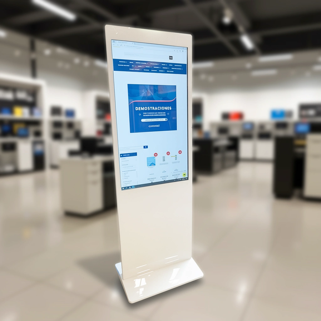 Transforma la forma en que presentas tus contenidos con nuestra pantalla táctil interactiva. Ideal para exhibir páginas web, aplicaciones de Windows, videos, fotos, catálogos en PDF, menús, mapas web y códigos QR, todo de manera dinámica y atractiva. Conectividad flexible tanto por WiFi como por cable LAN, lo que te permite una visualización fluida y sin interrupciones. Personaliza la pantalla con los colores y logo de tu empresa para crear una imagen única y profesional.